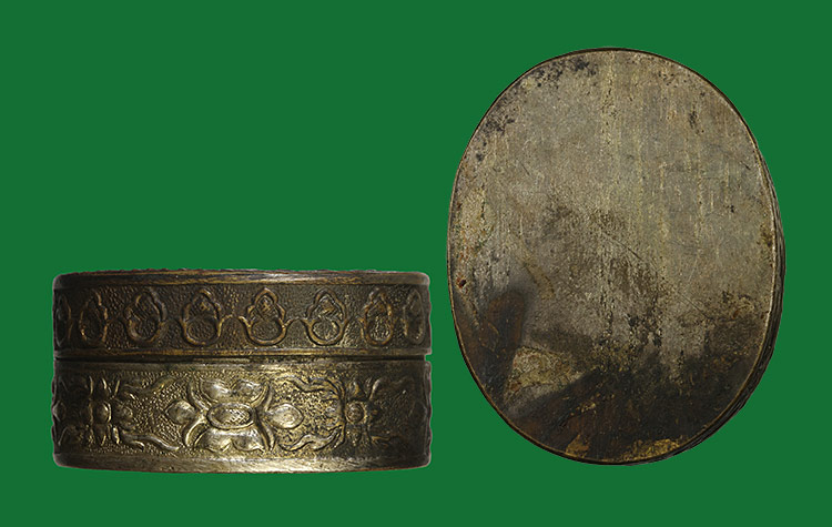 วัดใจ**เครื่องราง ตลับสีผึ้งแกะลายเก่า ไม่ทราบที่....ตามสภาพครับ |