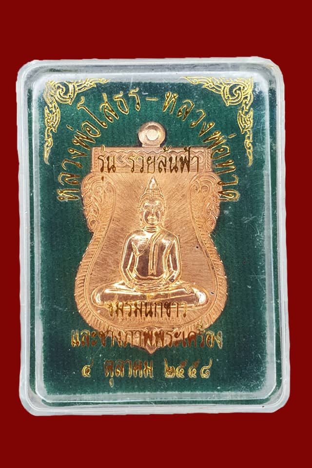 วัดใจ.......เหรียญพระพุทธโสธร รุ่นรวยล้นฟ้า หลังหลวงปู่ทวด เนื้อทองแดง กล่องเดิม
