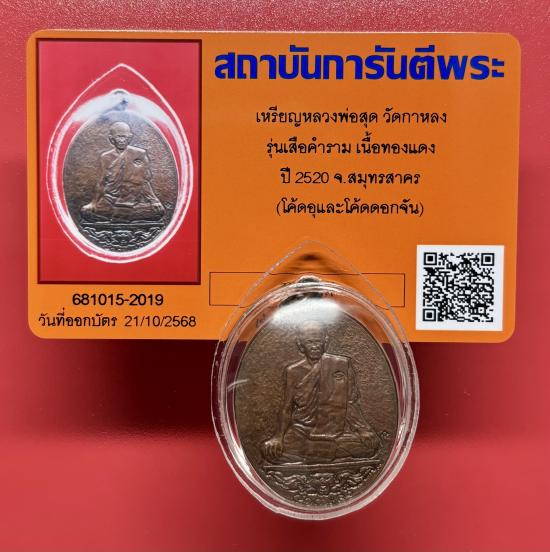 เหรียญหลวงพ่อสุด วัดกาหลง รุ่นเสือคำราม โค้ดอุ (นิยม) หายาก เนื้อทองแดง ปี 2520 พร้อมบัตรรับรองครับ