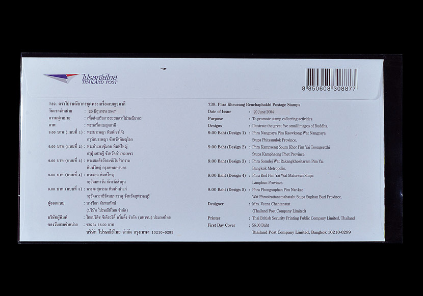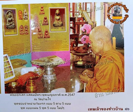 -แสตมป์ ชุดพระเครื่อง เบญจภาคี ( แสตมป์มีลักษณะพิเศษที่การจัดพิมพ์โดยเทคนิคพิเศษคือการปั๊มดุนนูน เฉพาะองค์พระและเคลือบด้วยวานิช ) พ.ศ 2547 ( ซองจำหน่ายวันแรก วันที่ 20 มิถุนายน พ.ศ.2547 )
