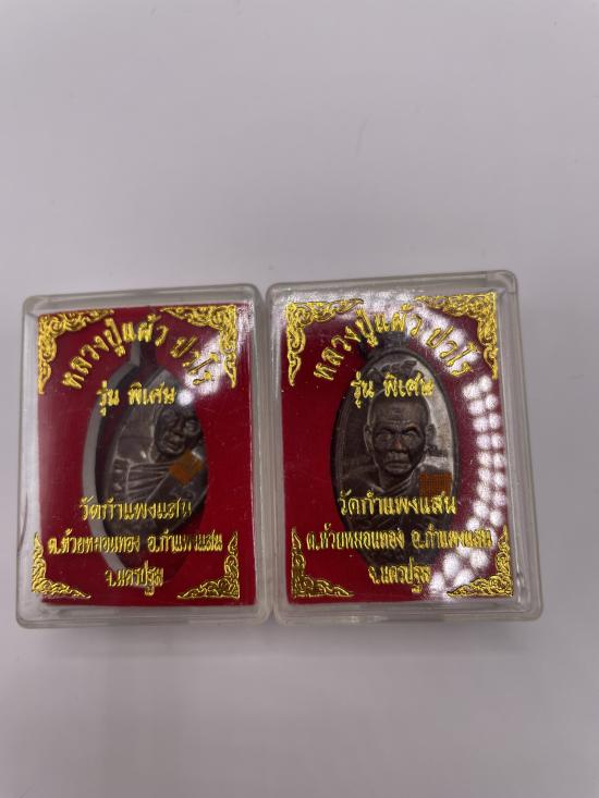 หลวงปู่แผ้ว วัดรางหมัน เนื้อทองแดง รุ่นพิเศษ โค้ตนำฤกษ์ 2 องค์ |