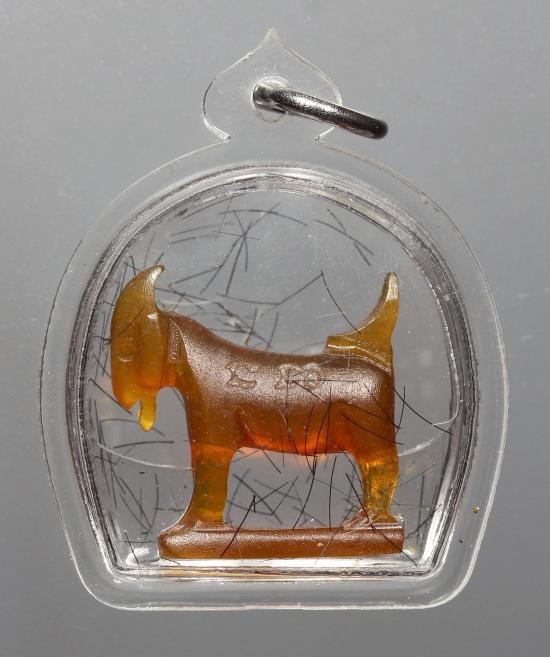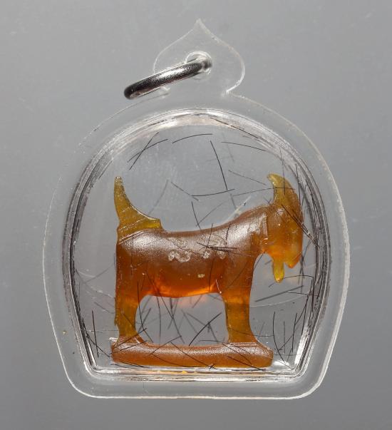 (คัดสวย พร้อมเลี่ยม เคาะเดียว) แพะ หลวงพ่อสิน แกะสลักเนื้อเขาควายเผือก สีน้ำผึ้งนิยม