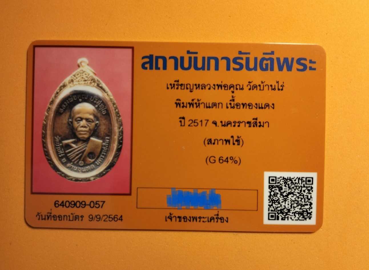 เหรียญหลวงพ่อคูณ ทองแดง ห้าแตกปี 17 เลี่ยมทอง พร้อมบัตร สภาพพอใช้