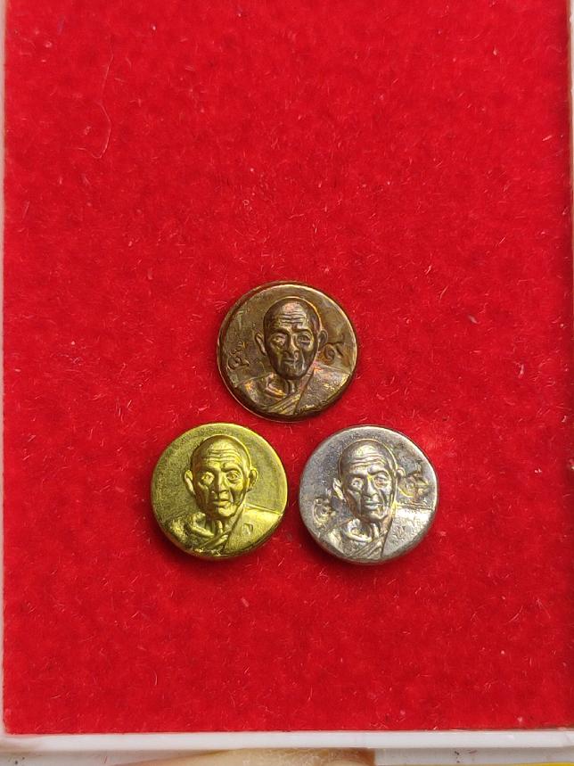 เม็ดกระดุมหลวงปู่แผ้ว 3 องค์ 3 เนื้อ / เนื้อทองทิพย์/เนื้อเงิน/เนื้อทองแดง/