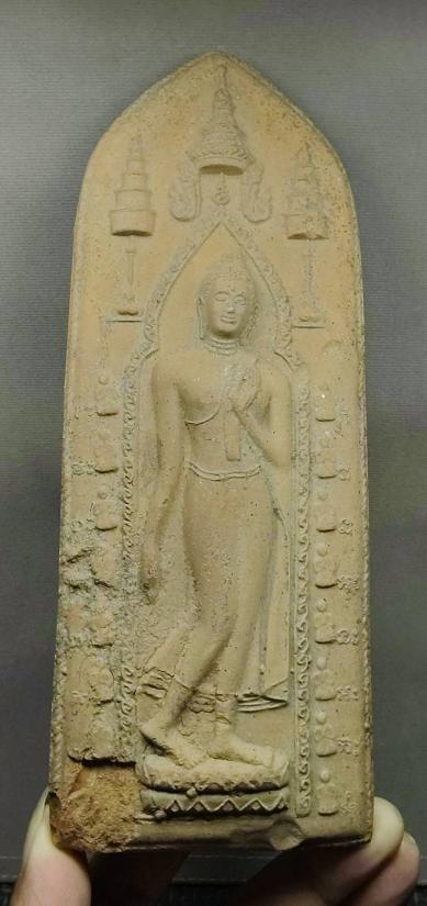 พระลีลากำแพงศอก เนื้อดิน ขนาดบูชา วัดหนองหอย ราชบุรี เดิมๆครับ |