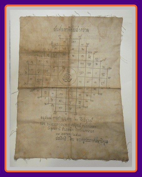 120-ผ้ายันต์มหาพิชัยสงคราม วัดอุดมธานี พศ.2511 ประสิทธิโดย พระครูประกาศสมาธิคุณ ขนาดประมาณ 8.5 x11.5" |
