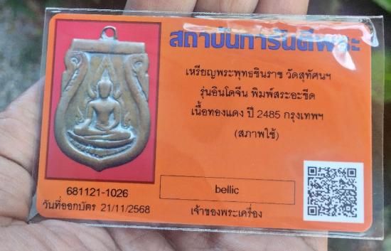 เหรียญพระพุทธชินราชอินโดจีน ปี 2485 +บัตร gpa+เลี่ยมกันนำ้ตลับพุก |