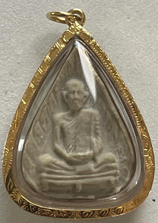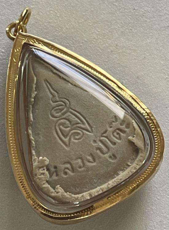 หลวงปู่โต๊ะ วัดประดู่ฉิมพลี พิมพ์ใบโพธิ์หลังยันต์นะ เนื้อผงเกสร เลี่ยมทอง + บัตร G