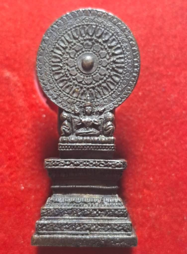รายละเอียด จัดสร้างโดยมหาวิทยาลัยราชภัฎนครปฐม ปี 2545 ขนาด 2 ซ.ม. สูง 4 ซ.ม.ครึ่ง เนื้อโลหะผสมรมดำ มีหมายเลขโค้ดบูชาเป็นศิริมงคล ตั้งหน้ารถ
