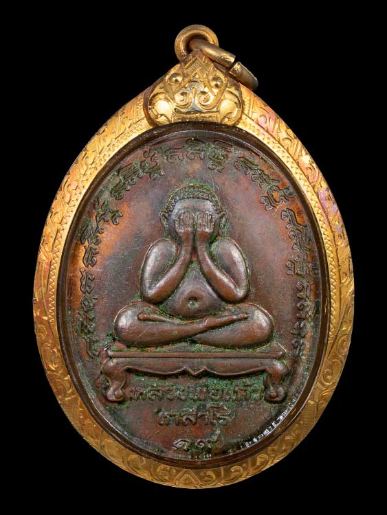 เหรียญปิดตาหลวงปู่แก้วแช่น้ำมันงาเลี่ยมทองg67%พร้อมจารครับ