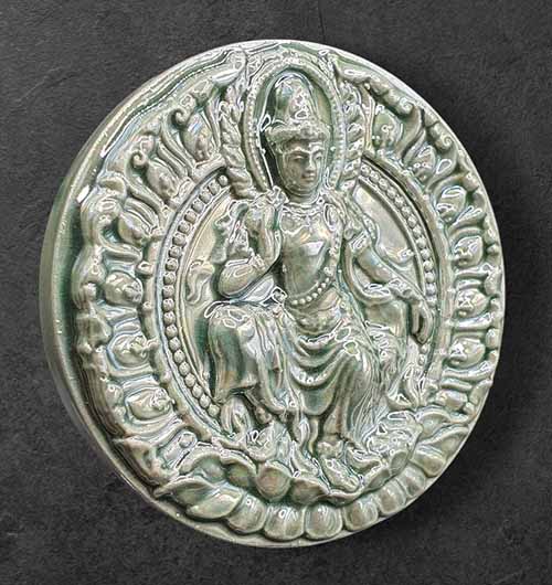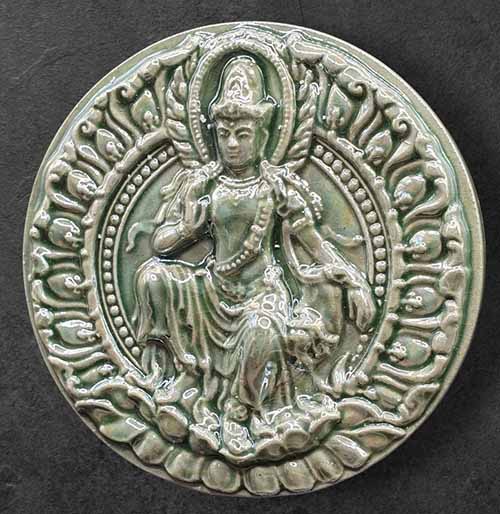องค์พ่อจตุคาม รามเทพ รุ่น เสวยสุข เนื้อกระเบื้องเคลือบสีเขียวมุก ขนาด 5 ซม. กล่องเดิม |