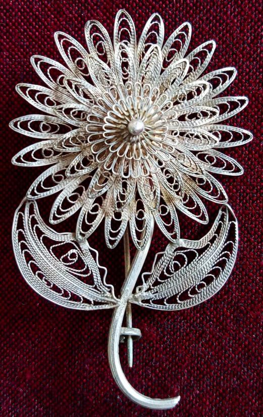 เข็มกลัดติดเสื้อ เงินแท้ ทรงดอกรักเร่ ขนาดประมาณ 2 นิ้ว 2 หุน X 1 นิ้ว 3 หุน หนักประมาณ 6 กรัม งานฝีมือถักขดเส้นเงินสุดประณีต งดงาม สภาพสวยตามรูป ส่งฟรีทั่วไทย รับประกันตามกฎครับ