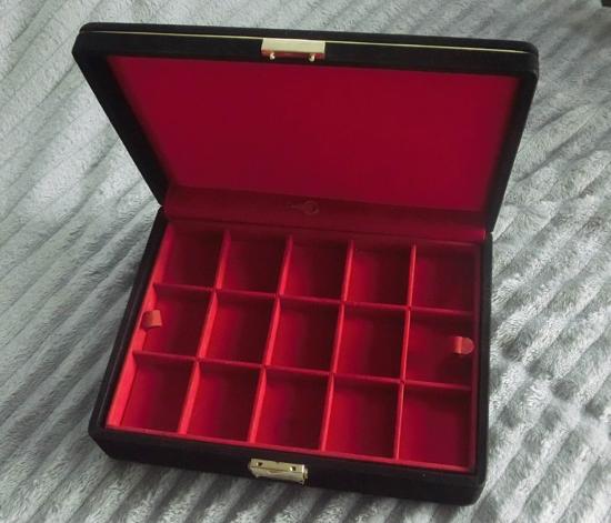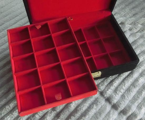 กล่องใส่พระ 2 ชั้น 30 ช่อง หุ้มกำมะหยี่มือสอง(ซื้อมาไม่ค่อยได้ใช้) สีดำ มีกุญแจล็อคได้