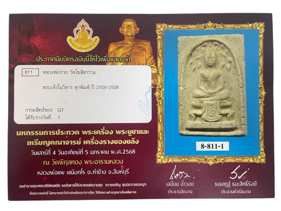 หลวงพ่อกวย สมเด็จปรกโพธิ์พิมพ์พระพุทธเจ้าในวิหาร ปี2500-2509 ติดที่1 พร้อมใบประกาศ |