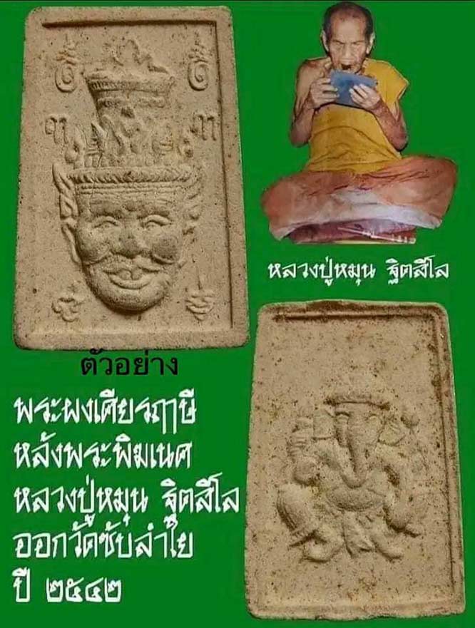 180.- พระผงเศียรฤาษีหลังพระพิฆเนศ หลวงปู่หมุน วัดซับลำใย ปี2542