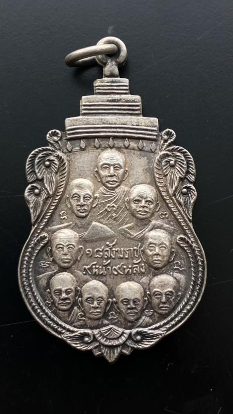 เหรียญเงิน 18 สังฆราช 9 หน้า 9 หลัง วัดรวกสุทธาราม กทม ปี2518 ปลุกเสก 3 วาระ ตอกโค๊ต(ร) พิธีใหญ่โดยมี หลวงปู่โต๊ะ วัดประดู่ฉิมพลี, หลวงพ่อสุด วัดกาหลง |