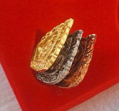 เหรียญหล่อฉลุ หลวงพ่อเงิน วัดบางคลาน รุ่นเสาร์๕ วางศิลาฤกษ์อุโบสถ วัดหนองโบสถ์ อ.หนองบัว จ.นครสวรรค์ ชุดกรรมการ เนื้อเงินนาคทอง