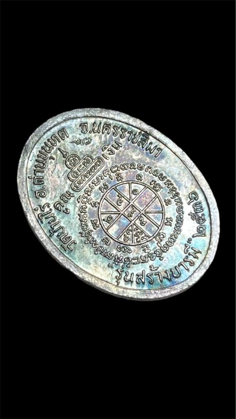 เหรียญไตรมาสหลวงพ่อคูณ รุ่นสร้างบารมี ปี 2536 เนื้อเงินลงยาสีน้ำเงิน