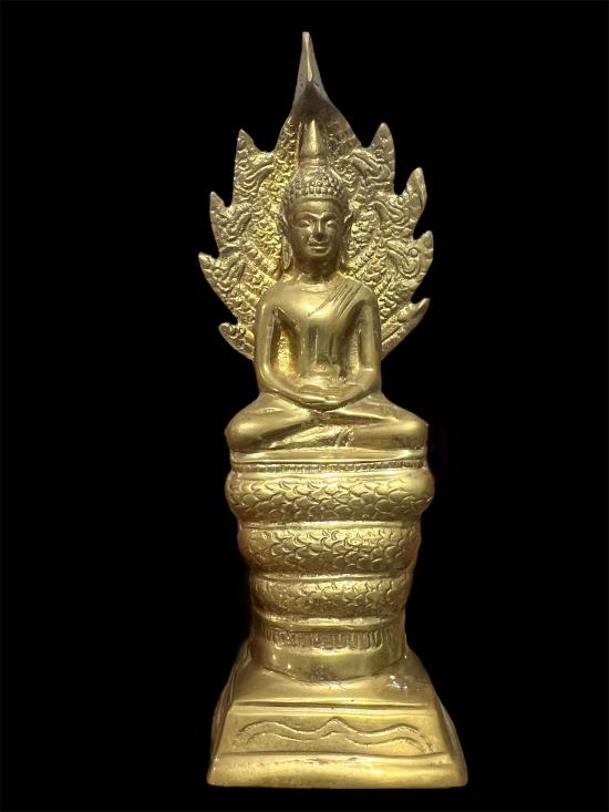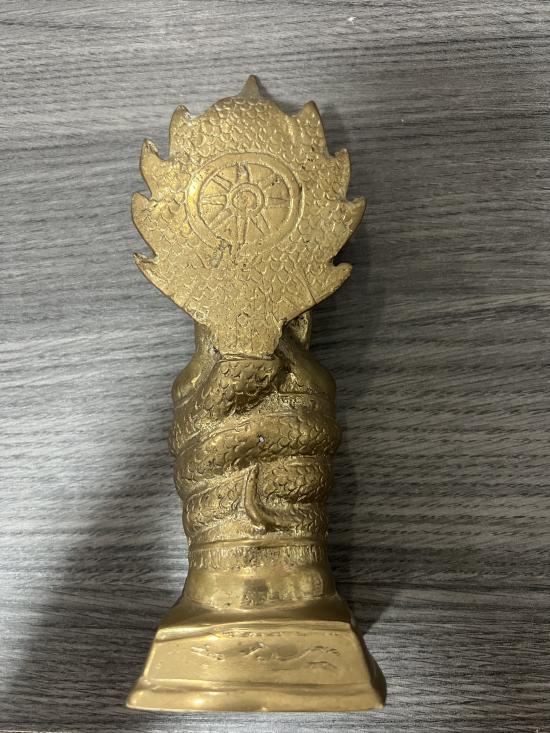 พระนาคปรก ทองเหลือง ก้นดินไทยผสมปูน ฐาน 2 นิ้วครึ่ง สูง 8 นิ้ว