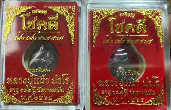 หลวงปู่แผ้ว ปวโร วัดรางหมัน เหรียญรุ่น โชคดี เนื้อทองเเดงรมดำ ( 2 เหรียญ สวยๆ)