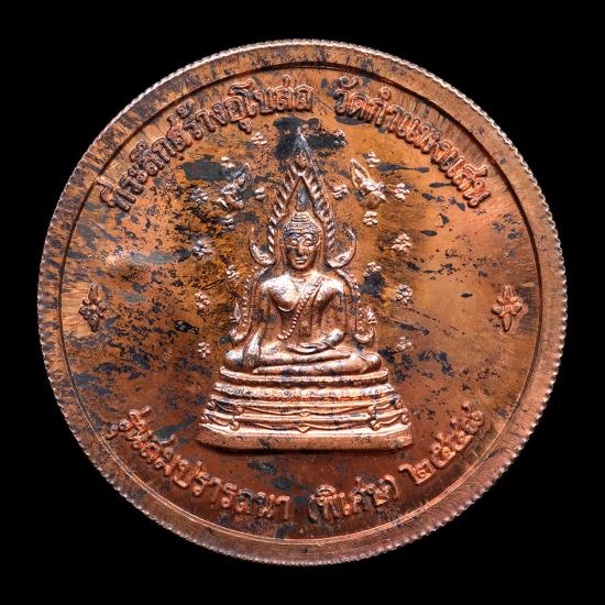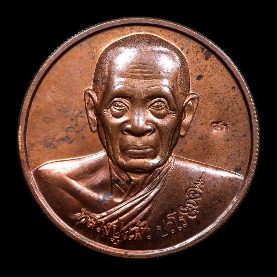 เหรียญกลมหลวงปู่แผ้ว รุ่นสมปรารถนา ที่ระลึกสร้างอุโบสถวัดกำแพงแสน ปี 2548 เนื้อทองแดง ตอกโค๊ตเลข ๘๓ แดงเคาะแรก