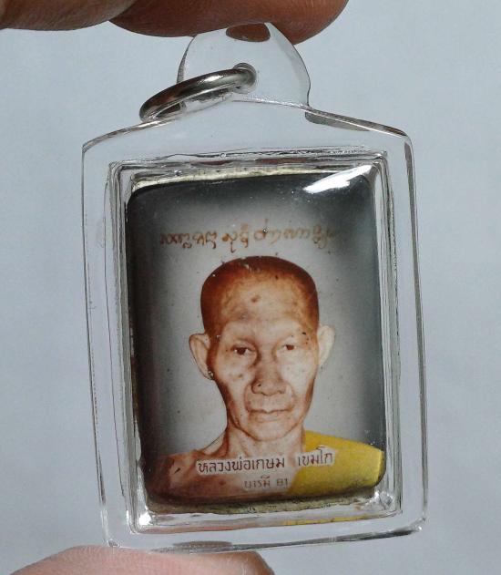 พระผงรูปเหมือนหลังล็อคเก็ต มีจีวร เกศา รุ่นบารมี 81 สร้างปี พ.ศ.2535 กรมตำรวจจัดสร้าง ชนวนมวลสารศักดิ์สิทธิ์ 1. เส้นเกศา ของหลวงพ่อเกษม เป็นที่รู้กันอยู่แล้วว่า เส้นเกศาเป็นของที่สูงที่สุดในร่างกายของมนุษย์เรา โดยเฉพาะเป็นเส้นเกศาของหลวงพ่อเกษมด้วยแล้ว น้อยคนนักที่จะได้ของท่านมาบูชา 2. จีวร สำหรับจีวรของหลวงพ่อเกษม ไม่เหมือนกับจีวรของภิกษุองค์อื่น ๆ ซึ่งใช้อย่างฉาบฉวยชั่วครั้งชั่วคราว พอเห็นว่าเก่าหน่อยก็ทิ้ง แต่ทว่าจีวรของหลวงพ่อเกษมอยู่กับตัวท่านจนหาที่ปะแทบไม่ได้ เป็นจีวรที่รับใช้ซับเหงื่อไคล คุ้มร้อนคุ้มหนาวให้แก่ท่านและปกติหลวงพ่อก็อาบน้ำน้อย ปีหนึ่งอาบน้ำอย่างมากก็ราว 2-3 ครั้งเท่านั้น น้ำเหงื่อไคลนี้จะเกิดก็ตอนท่านเข้ากรรมฐาน 3. ก้านธูป จากกระถางธูปของหลวงพ่อเกษม ซึ่งก้านธูปนี้นับเป็นสิ่งหนึ่งในพิธีกรรมพุทธศาสนา เป็นสื่อทางจิตของชาวพุทธทั้งมวล ปรากฏว่าทหารกองพลที่ 7 แห่งจังหวัดลำปาง เมื่อถึงคราวจะออกรบแนวหน้าได้ไปกราบนมัสการหลวงพ่อเกษม แล้วท่านก็จะให้พรพร้อมกับมอบของดีให้ติดตัวไปของดีนี้คือ ก้านธูป เมื่อทหารของชาติได้ก้านธูปไป และเกิดความเลื่อมใสกระแสจิตของหลวงพ่อเกษมกับทหารจึงรวมกันเป็นเหตุให้สามารถคุ้มกันภยันตรายได้ ไม่แพ้เครื่องรางประเภทอื่น ๆ 4. ดอกไม้บูชาพระ เฉพาะดอกไม้นี้ถ้าคุณประเวทย์ลูกศิษย์ของท่านไม่เก็บไว้ ดอกไม้ที่เหี่ยวแห้งก็จะถูกนำเอาไปทิ้ง ดอกไม้ได้ชื่อว่าเป็นของหอมของสวยงาม กลิ่นดอกไม้จะยังความชื่นใจแก่ผู้ที่ได้กลิ่น เป็นที่ชื่นตาเมื่อยามได้เห็น เมื่อสัมผัสทางตา นับเป็นสิ่งที่ไม่ควรขาดไปเสียจากชีวิตคนเรา 5. น้ำผึ้ง น้ำผึ้งนี้เป็นสิ่งที่ให้ความหวาน เป็นความสุขทางลิ้น นอกจากนั้น น้ำผึ้งยังเป็นยาอายุวัฒนะ บำบัดโรคภัยไข้เจ็บได้อีกด้วย 6. น้ำมันตังอิ๊ว เป็นน้ำมันที่ให้ประโยชน์ทางด้านยึดเนื้อพระให้ผนึกแน่นเป็นอันหนึ่งอันเดียวกัน หนำซ้ำยังมีประสิทธิภาพป้องกันน้ำ หรือสิ่งอื่นใดที่จะมาแยกเนื้อให้สลายไป น้ำมันตังอิ๊วนี้จะเปรียบก็เหมือนสามัคคีธรรมที่ช่วยยึดมนุษย์เรามุ่งมั่นสามัคคี บำเพ็ญไมตรีต่อกัน นับว่าเป็นสิ่งที่มีความหมายสูงเป็นสิริมงคลดียิ่ง 7. ปูนซีเมนต์ขาว เนื้อหาของปูนซีเมนต์ก็คือ ให้ประโยชน์ทางด้านเทคนิคการสร้างพระที่ใช้ปูนขาวเข้ามามีส่วนด้วย ก็เพื่อให้เนื้อพระแข็งแกร่งและคงทน ความแข็งแกร่งเป็นที่ปรารถนาของชายฉกรรจ์ทั่วไป แต่ก็มีบางคนที่อ่อนแอเป็นสมบัติส่วนตัว ฉะนั้นการที่มีพระอันจะมาเสริมความแข็งแกร่งขึ้นได้ จึง