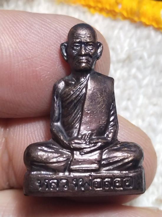 รูปเหมือนปั๊มนิ้วกระดก หลวงพ่อลออ วัดหนองหลวง จ.นครสวรรค์ เนื้อทองแดง ตอกโค๊ดเลเซอร์หมายเลข |
