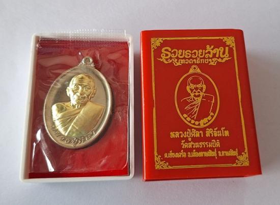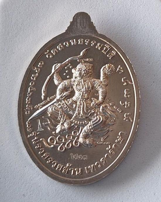 วัดใจ หลวงปู่ศิลา รุ่น รวยรวยล้านเทวดารักษา เนื้อแปะตั้งหน้ากากทองทิพย์ หลังพหูรมาน No.223