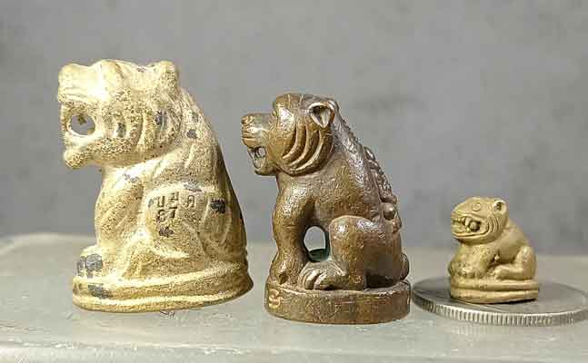 เหรียญหัวเสือ รุ่นกันภัย อ.ตี๋เล็ก สำนักสงฆ์เขาสุนะโม จ.เพชรบูรณ์ + เสือหลวงพ่อปาน วัดน้อย คลองด่าน +เสือหลวงปู่แขก ปภาโส วัดสุนทรประดิษฐ์บางระกำ พิษณุโลก รุ่น นะมงคลมหาบารมี 87 + เสื้อจิ๋ว ไม่ทราบที่ |