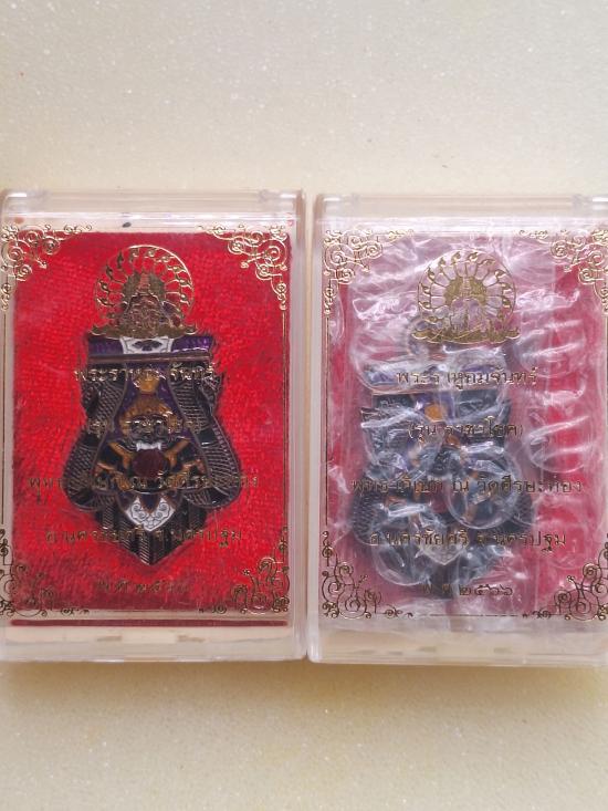 ((วัดใจ) 2 องค์เหรียญพระราหูอมจันทร์ รุ่นราชาโชค วัดศีรษะทอง เนื้อทองแดงลงยาม่วง |