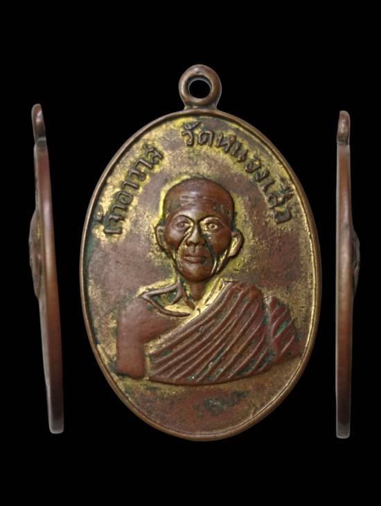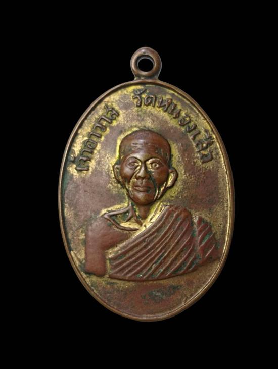 เหรียญหลวงพ่อหอม เจ้าอาวาสวัดหนองเสือ ปี 2508 อ.ท่าม่วง จ.กาญจนบุรี |