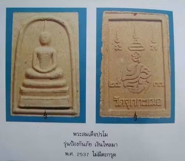 พระสมเด็จปรโม รุ่นป้องกันภัย เงินไหลมา หลวงพ่อเริ่ม ปรโม วัดจุกเฌอ ชลบุรี ปี37