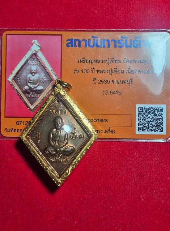 ชื่อพระเครื่อง หลวงปู่เอี่ยม พิมพ์ข้าวหลามตัด รุ่น 100 ปี จัดสร้างปี 2539 เหรียญยอดนิยม เดิมๆ โดนัทเต็ม พร้อมบัตร