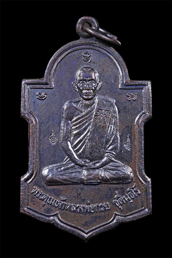 วัดใจเคาะเดียวแดง เหรียญตู้ไปรษณีย์ หลวงพ่อกวย ปี 2543 เนื้อทองเเดงรมดำ วัดซับลำใย จ.ลพบุรี หลวงปู่หมุน ปลุกเสก