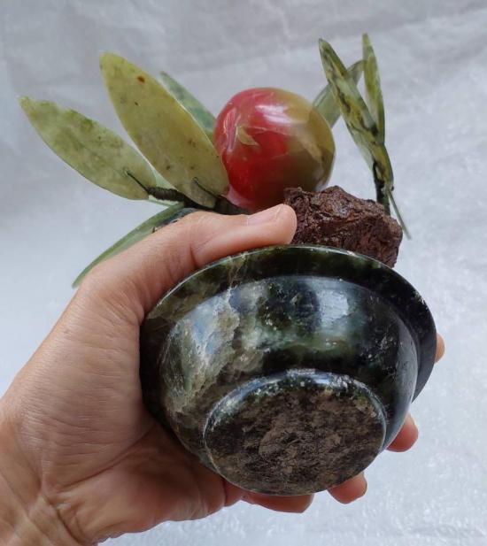 ***วัดใจ***ต้นท้อหยกบอนไซ ซึ่งเป็นงานฝีมือที่ทำจากหินหยกและหินควอตซ์ สูงประมาณ 8นิ้ว