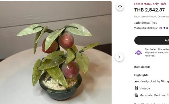 ต้นท้อหยกจีน (Chinese Jade Peach Bonsai Tree) ซึ่งเป็นงานฝีมือที่ทำจากหินและหยก ต้นท้อหยกจีนเป็นของมงคลที่นิยมใช้ประดับเพื่อเสริมฮวงจุ้ย สุขภาพ และความมั่นคง