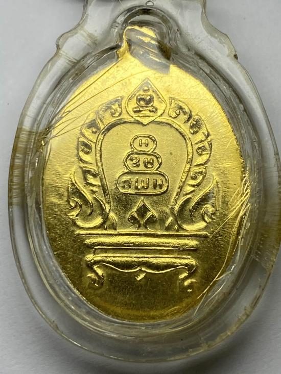 เหรียญพ.ฆ.อ สมเด็จพระพุทธโฆษาจารย์ (เจริญ) วัดเขาบางทราย พิมพ์หลังพระ เนื้อเงินกระไหล่ทอง ปี 2495 จ.ชลบุรี (ท่านเจ้าคุณนรฯ อธิษฐานจิต)ฐานจิต)