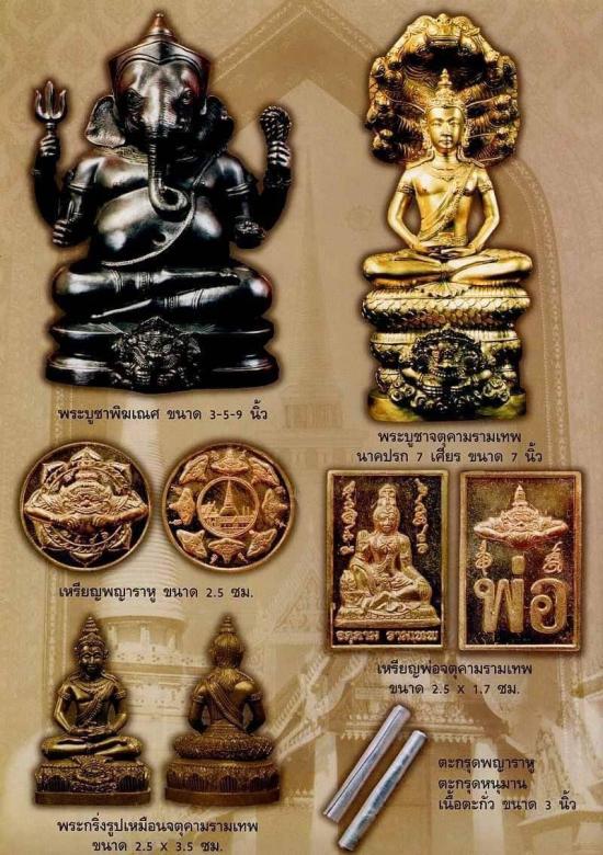 รายละเอียด เหรียญพญาราหู เนื้อนวะโลหะ ขนาด 2.5 ซม. พิธี "มั่งมีศรีสุข" ปี 2547 .. ตำนานแห่งความขลัง ทั้งพิธีพุทธา และเทวาภิเษก .. ฤกษ์พิธีเททอง เมื่อวันพฤหัสบดี ที่ 19 กุมภาพันธ์ พ.ศ. 2547 ณ เนินมังกร เขาพลายดำ อาณาจักรแห่งทะเลใต้ .. เหรียญพญาราหูเข้าพิธีมหาจักรพรรดิ์ เทวาภิเษกพระเทวราชโพธิสัตว์จตุคามรามเทพ รุ่น มั่ง มี ศรี สุข เมื่อวันที่ 4 - 5 - 6 มิถุนายน 2547 ณ วิหารทับเกษตร วัดพระมหาธาตุวรมหาวิหาร และเข้าพิธีที่ศาลหลักเมืองนครศรีธรรมราช .. องค์พญาราหูออกแบบได้สัดส่วน สุดขลังมีพลังด้านบวก อยู่ในบัวทั้ง 8 ทิศ ด้านหลังมีองค์พระธาตุฯ รายล้อยด้วยราหู 8 ด้าน ตอกโค๊ต ลงตัวด้วยโลหะชั้นดีในการจัดสร้าง มีส่วนผสมของทองคำอยู่ในเปอร์เซ็นสูง .. ตลอดระยะเวลา 3 วันในการปลุกเสก พระอาทิตย์ทรงกลดทุกวัน .. ผู้ใดได้บูชาองค์ราหู จะพลิกฟื้นชีวิต ลิขิตดวงชะตาให้ดีขึ้น ทำกิจอันใดจะประสบความสำเร็จ มีกินมีใช้ไม่ขัดสัน ทำกิจอันใดจะสัมฤทธิ์ผลตามเป้าหมายที่ได้วางไว้