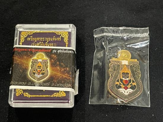 เหรียญพระราหูอมจันทร์ รุ่นสุริยันจันทรา วัดศรีษะทอง จังหวัดนครปฐม เนื้อฝาบาตร หมายเลข 1170 พร้อมกล่อง |
