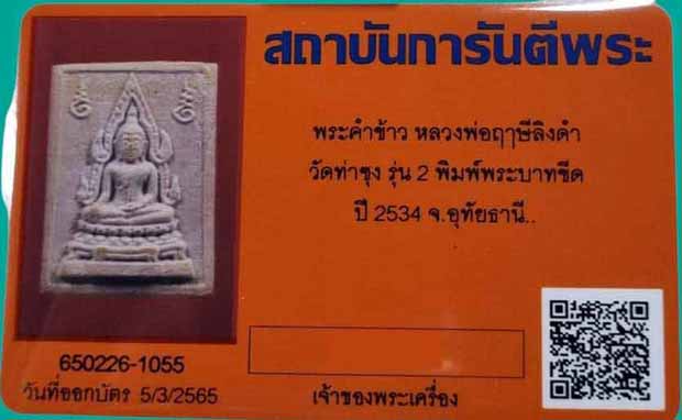 พระคำข้าว หลวงพ่อฤาษีลิงดำ วัดท่าซุง พระบาทขีด สภาพสวย พร้อมบัตรการันตีพระ