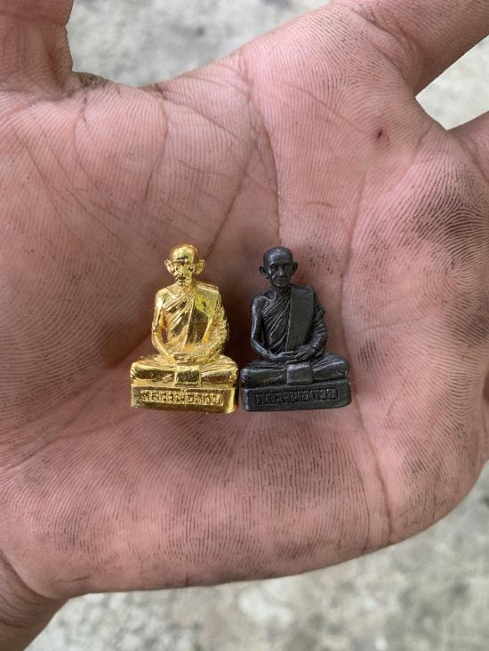 **เคาะเดียว**เเพ็คคู่รูปหล่อหลวงพ่อกวยปี60 รมดำ กระไหล่ทอง สวยเดิม |