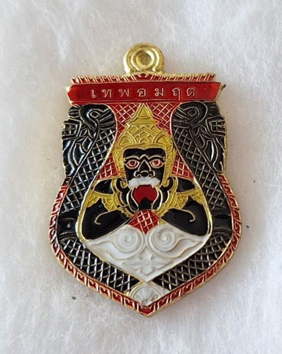 เหรียญพระราหูอมจันทร์ หลวงปู่มหาศิลา เมตตาอธิษฐานจิต รุ่นเหนือดวง เนื้อทองเหลืองลงยา เลขเบิ้ล No.77 |