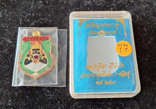 เหรียญพระราหูอมจันทร์ หลวงปู่มหาศิลา เมตตาอธิษฐานจิต รุ่นเหนือดวง เนื้อทองเหลืองลงยา เลขเบิ้ล No.77 |