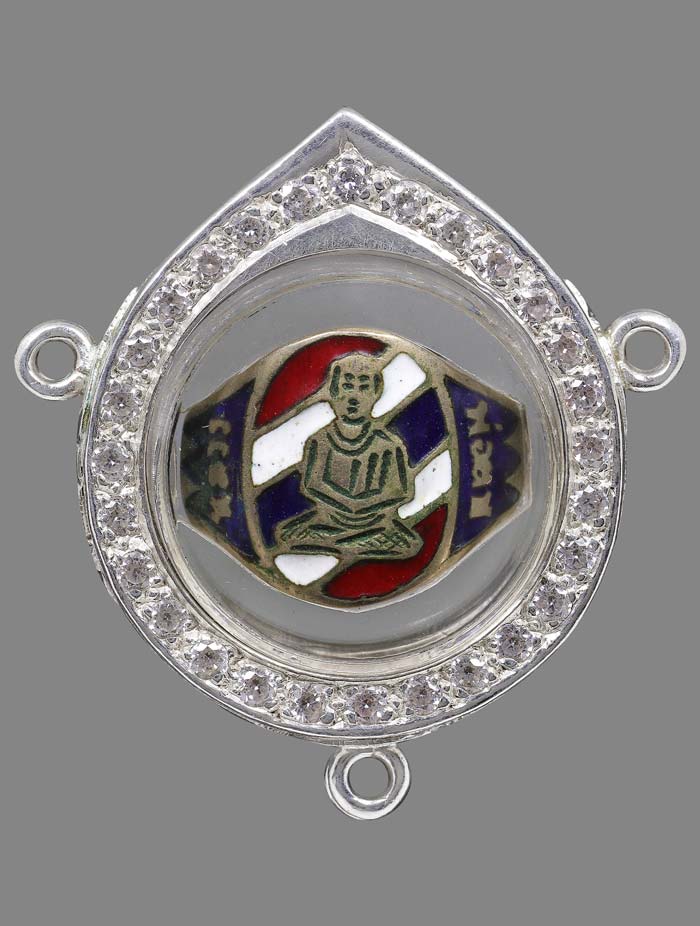 หัวแหวนรุ่นแรก เนื้ออัลปาก้าลงยา ลายธงชาติ หลวงพ่อทบ วัดชนแดน รุ่นนี้สร้างปี พ.ศ.2483 ที่วัดทรงธรรม อ.ทับคล้อ จ.พิจิตร พร้อมเลี่ยมเงินแท้