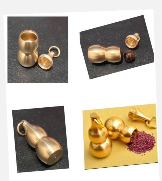 ***เคาะเดียว***น้ำเต้าทอง งานอลูมิเนี่ยม ทำพวงกุญแจฝาเกลียว ใส่ทรายเสก ลูกอมเม็ดเล็ก หรือ ตะกรุดเล็ก ขนาดพอสวยสูงรวมฝา4ซม.รวมตะขอ ครับ |