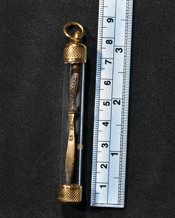พระขรรค์ รุ่นคูณรุ่งโรจน์ ปี2537 เนื้อนวะโลหะแก่ทอง ด้ามบรรจุตะกรุดเงิน ใส่หลอดตะกรุด ปิดหัวท้ายงานเลเซอร์