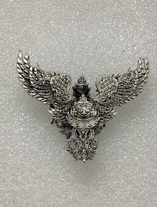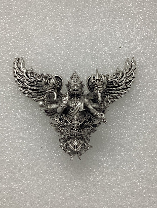 พญาครุฑมังรายศาสตร์ เศรษฐีอนันตทรัพย์ พระอาจารย์วิรุต วัดสันมะเหม้า จ.เชียงราย เนื้อซาตินเงิน พิมพ์เล็ก สูง 3 ซ.ม. กล่องเดิม |