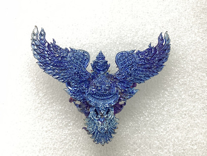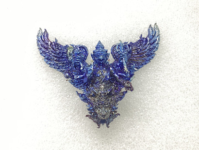 พญาครุฑมังรายศาสตร์ เศรษฐีอนันตทรัพย์ พระอาจารย์วิรุต วัดสันมะเหม้า จ.เชียงราย เนื้อชนวนกำเนิดเศรษฐี (สีปีกแมงทับ) สูง 4 ซ.ม. พิมพ์ใหญ่ กล่องเดิม