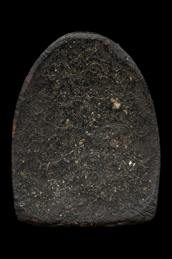 พระยาเขาคำกะลาแกะ ด้านหลังมีรอยจารอักขระ ไม่ทราบที่ครับ |