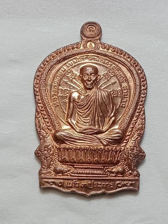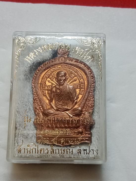 เหรียญนั่งพาน 3มต.หลวงพ่อเกษม เขมโก เนื้อทองแดง กล่องเดิม |